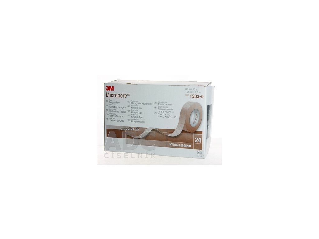 3M MICROPORE náplasť hnedá, cievka 1,25cm x 9,1m, zo špeciálneho papiera 1x24 ks