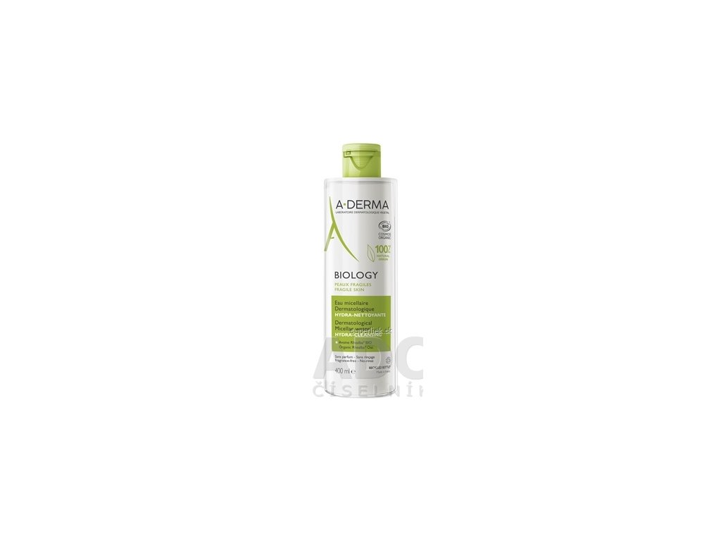 A-DERMA BIOLOGY Dermatologická micelárna voda HYDRATAČNÁ-ČISTIACA jemne čistí pleť, odstraňuje mejkap a nečistoty pleti. Nevysušuje pleť. Bezoplachová starostlivosť pre krehkú pleť.