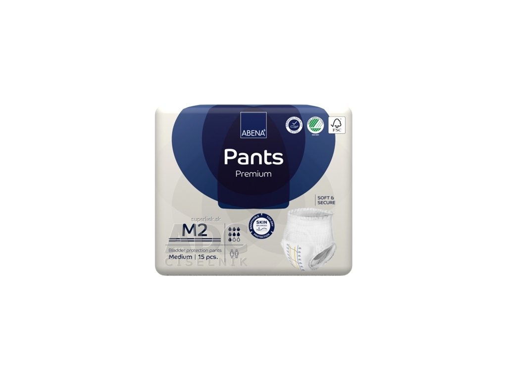 Abena Pants sú priedušné anatomicky tvarované navliekacie plienkové nohavičky pre dospelých so strednou až ťažkou inkontinenciou. Ako jediné na SK trhu sú plienkové nohavičky Abena Pants Premium hrdým držiteľom severskej ekoznámky SWAN. Bezpečnosť, kvalita, maximálne pohodlie užívateľa a ohľaduplnosť k životnému prostrediu sú kľúčovými prvkami pri vývoji plienok v Abene. Všetko s maximálnou snahou neustále zlepšovať kvalitu života.