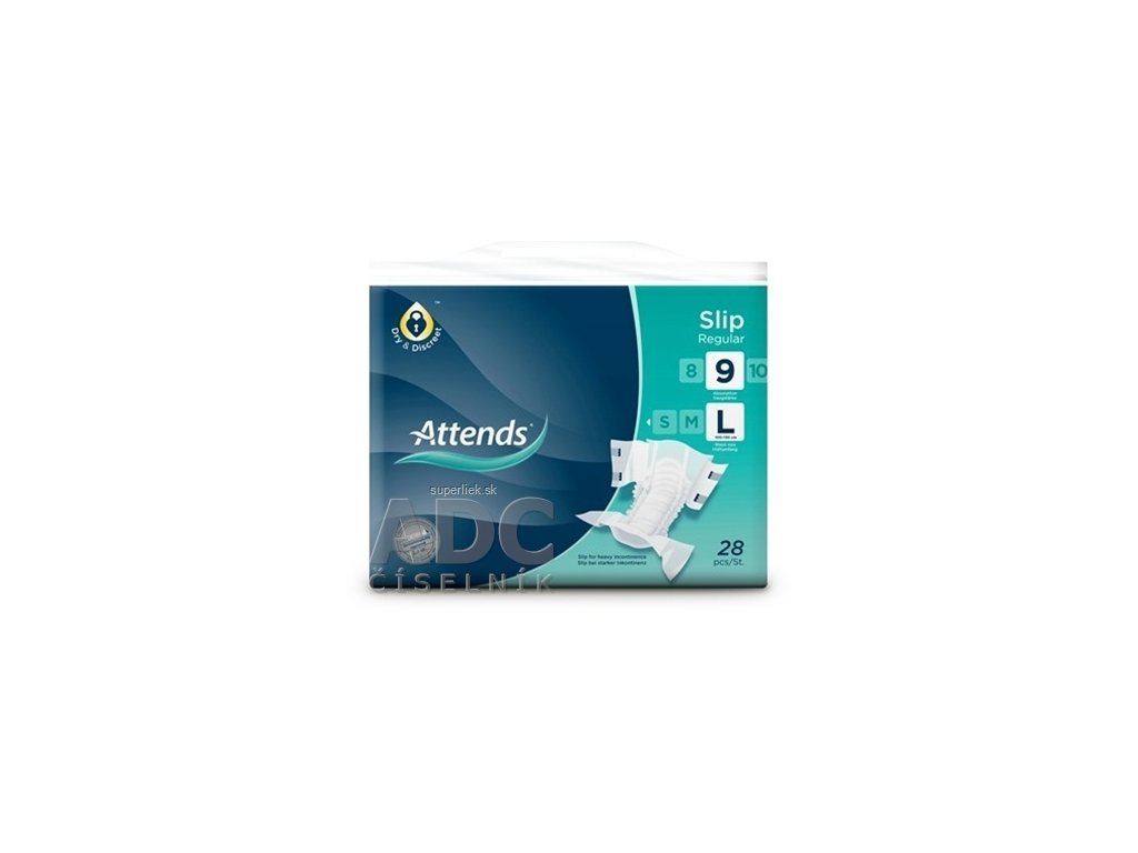 ATTENDS Slip Regular 9 L plienkové nohavičky, savosť 2899 ml, obvod bokov 100-150 cm, 1x28 ks