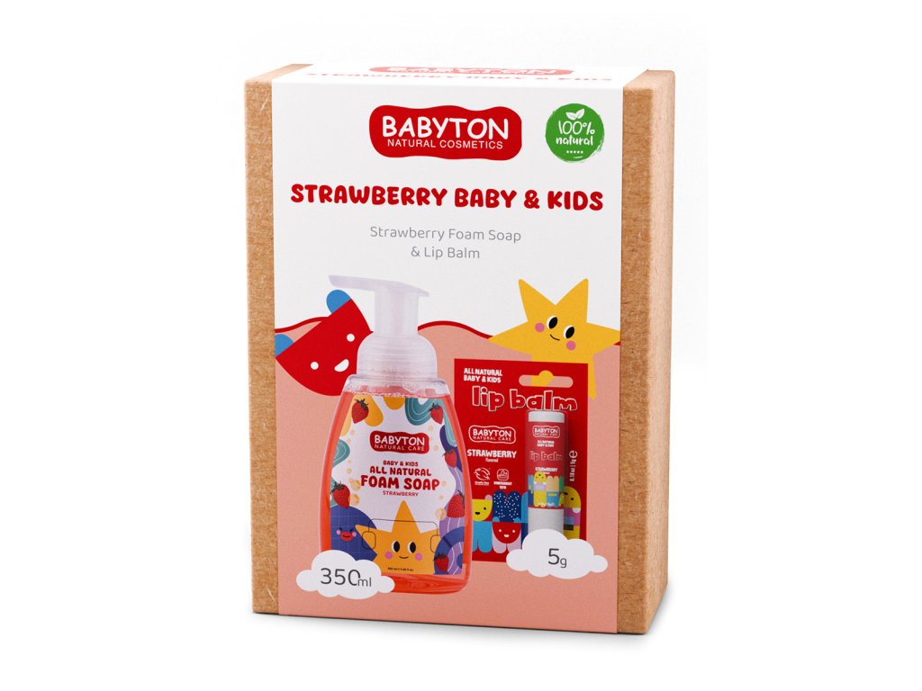 FOAM SOAP STRAWBERRY - Penové mydlo na ruky - vyrobené použitím vysoko kvalitných, ekologických výrobných procesov a za studená lisovaného olivového oleja, Neobsahuje žiadne živočíšne tuky, Vdaka svojim hodnotným zložkám zanecháva pokožku rúk jemnú a hodvábne hladkú. Obsahuje: Olivový olej, kokosový olej, kyselinu citrónovú, ricínový olej a glycerín. Neobsahuje: parabény, PEG, EDTA, alkohol, silikóny, sulfáty, syntetické vône, farbivá, minerálne oleje, SLS/SLES, triklosan ani fenoxyetanol. Použitie: Naneste pnmerané množstvo na mokré ruky. Trite ruky spolu aspoň 20 sekúnd a potom dôkladne opláchnite pod tečúcou vodou. Upozornenie: Uchovávajte mimo dosahu detí. Vyhnite sa kontaktu s očami. Skladujte pri izbovej teplote (25 °C). LIP BALM STRAWBERRY - PRÍRODNÝ BALZAM NA PERY PRE DETI A BÁBÄTKÁ. Balzam je špeciálne navrhnutý na ochranu, hydratáciu a zjemnenie jemných pier bábätiek a detí. Vyrobený zo 100 % prírodných zložiek, hlboko vyživuje pery vďaka olivovému oleju a bambuckému maslu. Včelí vosk vytvára ochrannú bariéru na perách, čím zabraňuje strate vlhkosti a znižuje suchosť spôsobenú vonkajšími faktormi. Výťažky z nechtíka lekárskeho a koreňa alkanny upokojujú citlivé pery, zatiaľ čo vitamín E podporuje prirodzený regeneračný proces pokožky, aby pery zostali zdravé a hebké. Perfektný na každodennú starostlivosť a ochranu jemných pier počas celého dňa. UPOZORNENIE: Len na vonkajšie použitie. Uchovávajte mimo dosahu detí do 3 rokov bez dozoru. Vyhnite sa kontaktu s očami. Skladujte pri izbovej teplote (pod 25 °C). Chráňte pred priamym slnečným žiarením.x
