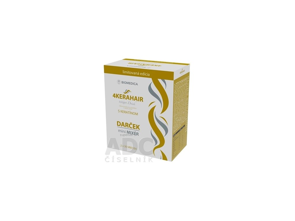 BIOMEDICA 4KERAHAIR Kolagen drink + Darček s keratínom 2x30 ks (60 ks) + darček mini mixér, 1x1 set