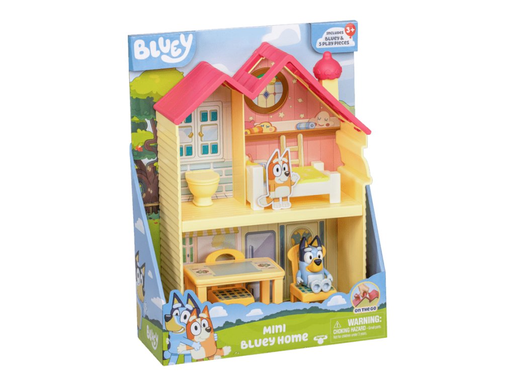 Se obsahuje mini domček s detailným interiérom a postavičky Bluey, Bingo a ďalších členov rodiny.