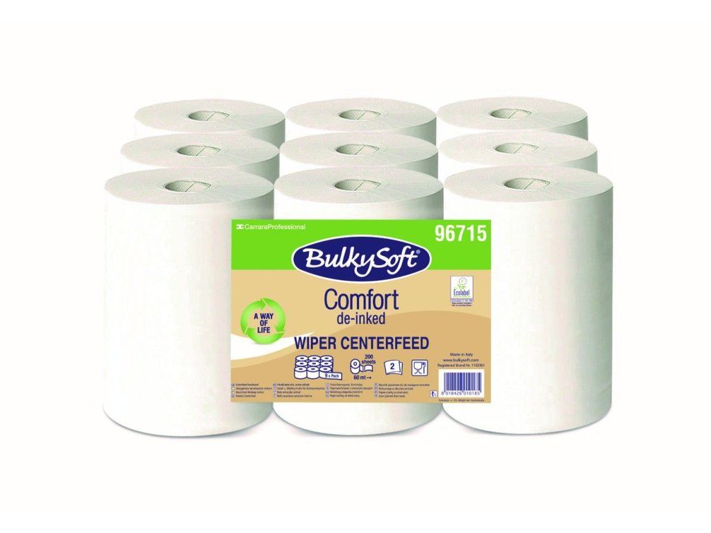 Bulkysoft Comfort ECO Papierová utierka v rolke s centrálnym dávkovaním je ekologickou, praktickou a ekonomickou voľbou pre každého, kto hľadá kvalitné papierové utierky s ohľadom na životné prostredie. Vďaka svojej jemnosti, odolnosti, perforácii a certifikáciám sú ideálne pre široké spektrum použitia na miestach s nižšou premávkou.
