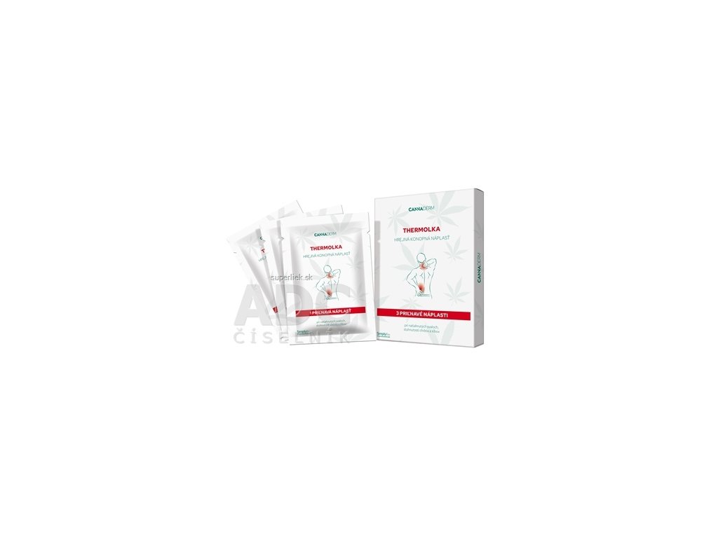 Cannaderm Thermolka hrejivá konopná náplasť prináša rýchlu a dlhotrvajúcu úľavu pri natiahnutí svalov, stuhnutosti chrbta a kĺbov, únave a preťažení pohybového aparátu. Náplasť s obsahom konopného oleja a mentolu vplyvom príjemného prehriatia postihnutých miest obmedzuje nepríjemné pocity stuhnutosti, únavy a preťaženia a uľavuje pohybovému aparátu. Krátky chladivý efekt po aplikácii náplasti (trvá niekoľko minút) sa postupne rozvíja v silný hrejivý účinok. Hydrogélová forma náplasti zaisťuje ľahkú priľnavosť k pokožke, zároveň ale umožňuje náplasť jednoducho odstrániť z pokožky bez toho, aby došlo k nepríjemnému podráždeniu kože a trhaniu chĺpkov.
