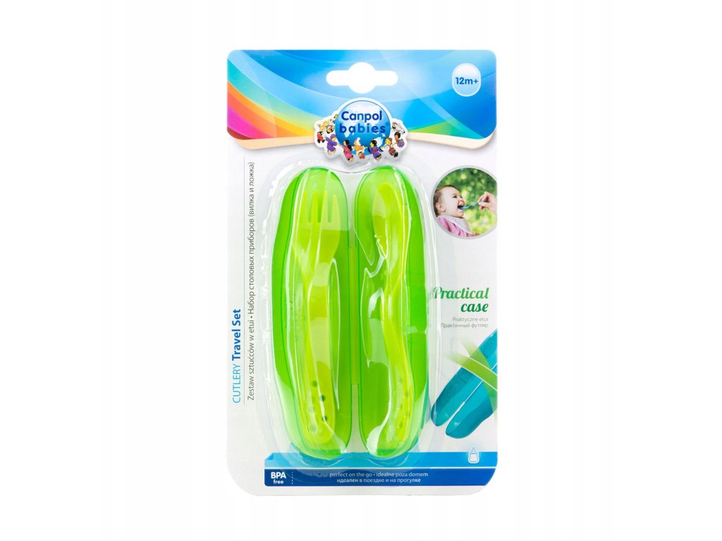 Sada príborov je ideálna na kŕmenie batoľaťa a na učenie sa samostatného jedenia. Vyrobené z bezpečného plastu bez obsahu BPA. Majú zaoblené okraje, takže nedráždia jemné ďasná dieťaťa. Príbory sú zabalené v praktickom puzdre, ktoré umožňuje ich vziať na prechádzku alebo na cestu. Súprava sa skladá z vidličky a lyžice. Určené pre deti od 12 rokov mesiaca života.