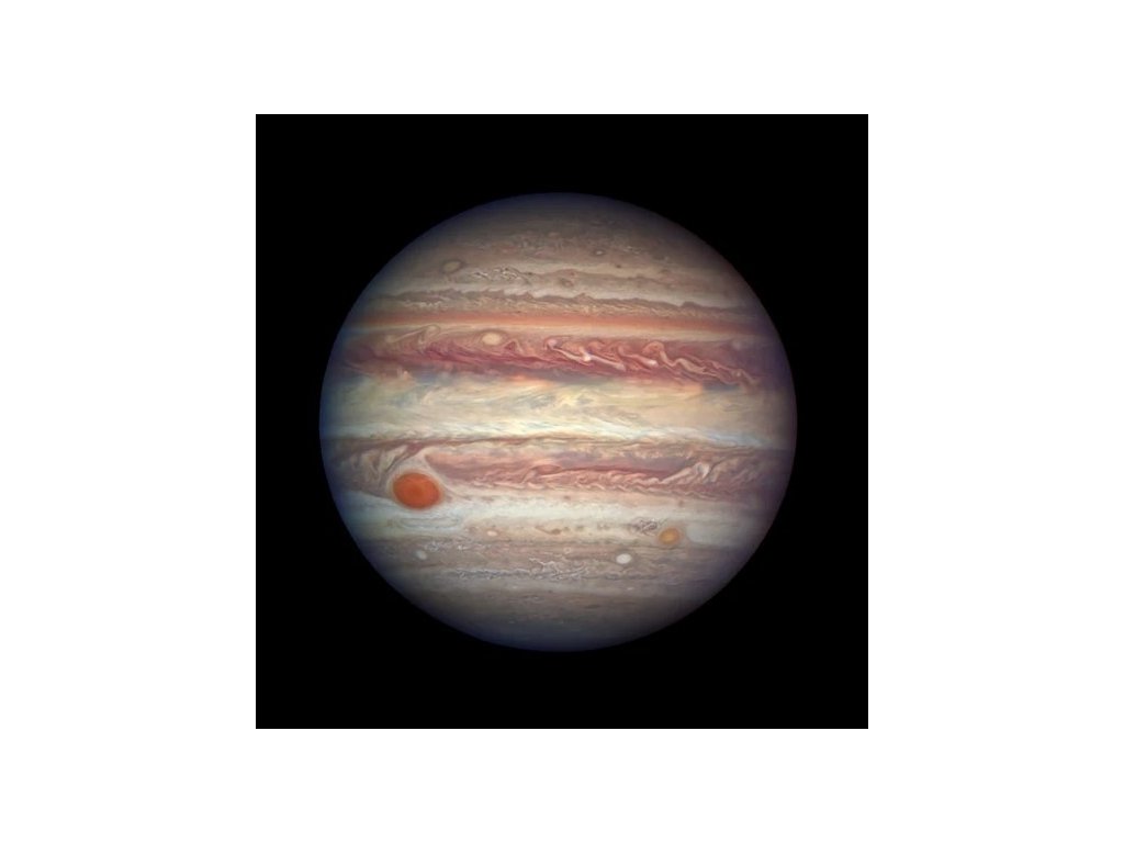 Jupiter je známy pre svoje nádherné farebné pruhy a víriace mraky, ktoré sú vlastne obrovskými búrkami. Tou najznámejšou je obrovská Veľká červená škvrna, búrka, ktorá zúri už stovky rokov a je väčšia ako celá Zem! Jupiter má tiež najviac mesiacov zo všetkých planét v našej sústave, z ktorých niektoré sú väčšie ako planéta Merkúr!