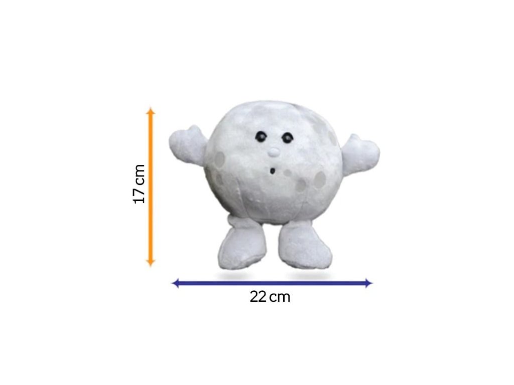 Naša plyšová Luna dokonale vystihuje ikonický, krátermi poznačený vzhľad Mesiaca, vďaka čomu je hmatovým a pútavým spôsobom, ako sa zoznámiť s týmto dôležitým nebeským telesom, ktoré stráži naše noci.