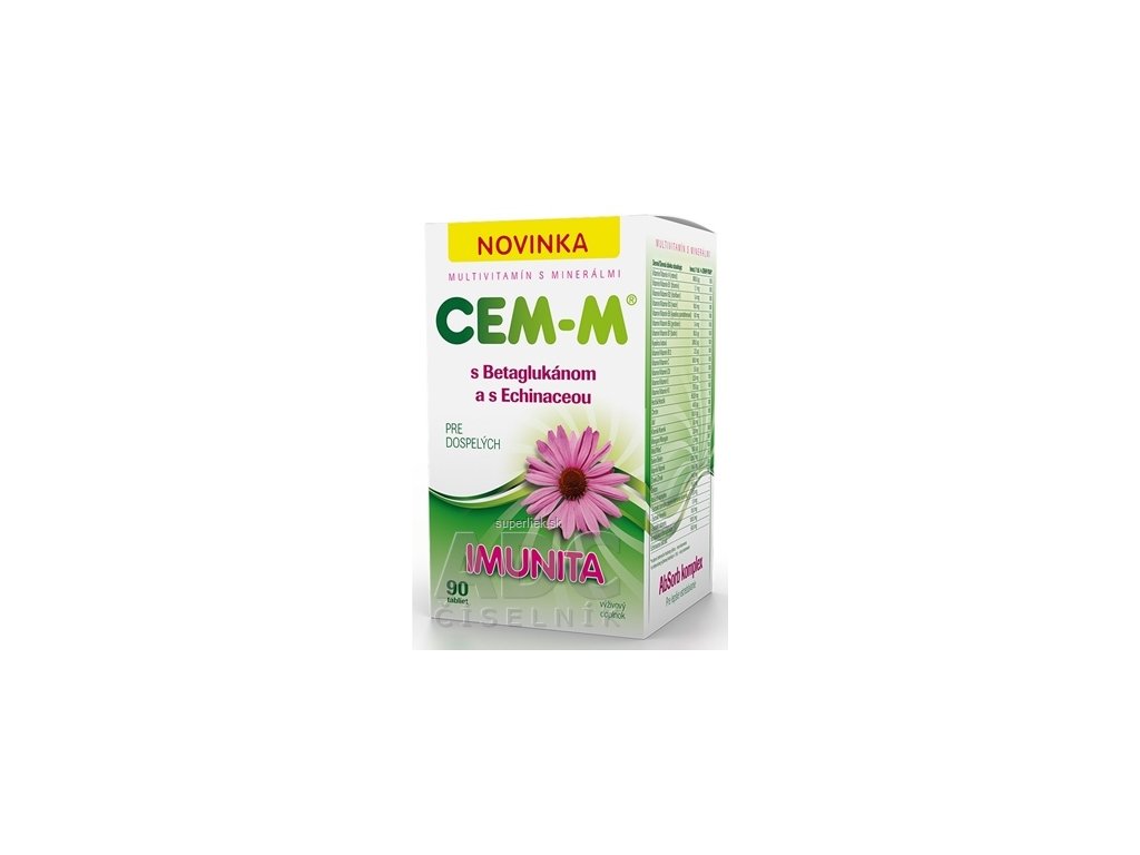 Výživový doplnok multivitamín s minerálmi CEM-M® pre dospelých Imunita. Obsahuje všetky hlavné vitamíny a minerály, ktoré prispievajú k správnej funkcii ľudského organizmu. Obsahuje AbSorb komplex pre lepšie vstrebávanie, Betaglukán a Echinaceový extrakt.