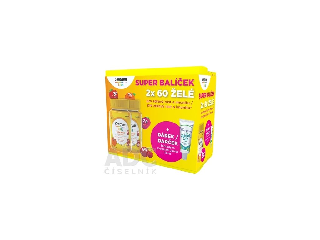 Centrum kids GUMMIES multifruit (darčekové balenie) želé s vitamínmi a minerálmi 2x60 ks + darček: zubná pasta (inov. 2025), 1x1 set