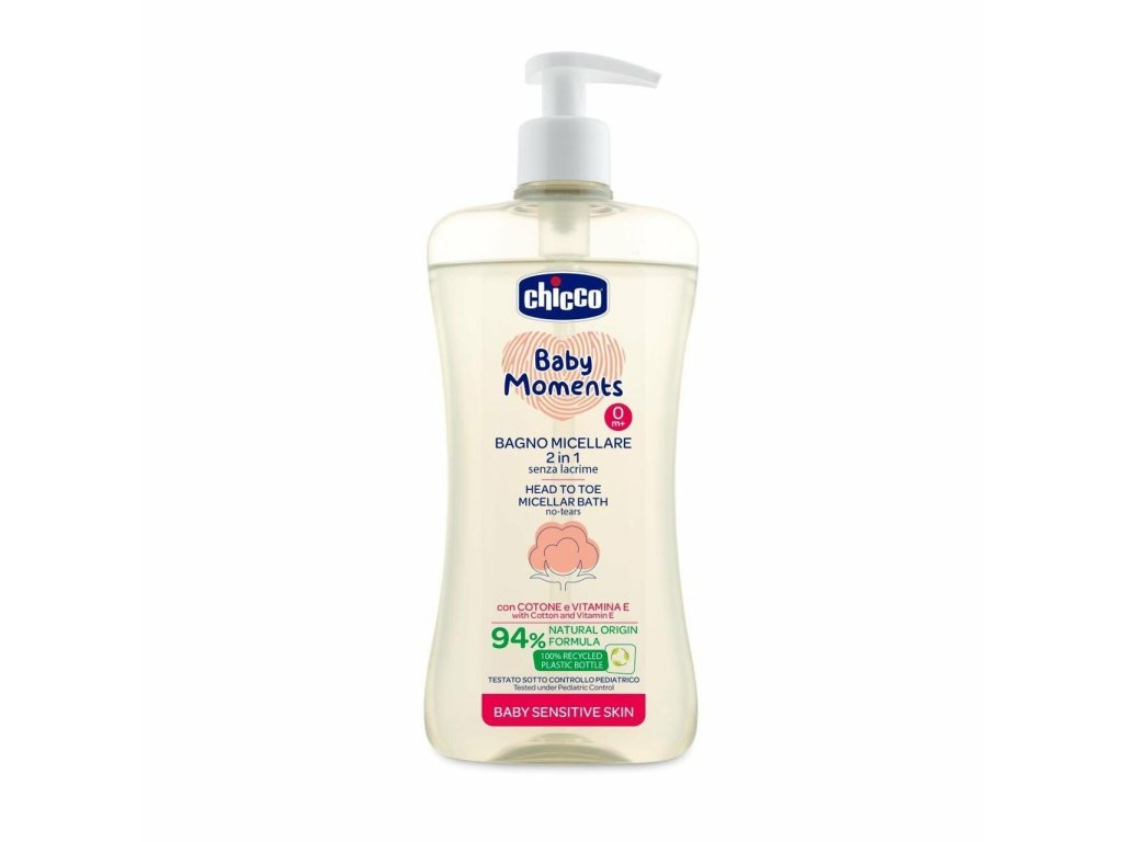 Micelárna voda do kúpeľa 2v1 Baby Moments Chicco je ideálna pre každodennú hygienu a výživu pokožky bábätiek.