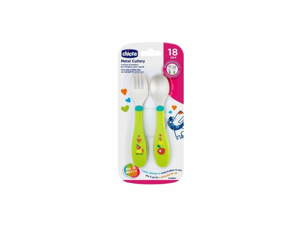 Chicco Detský kovový príbor, zelený, od 18m+