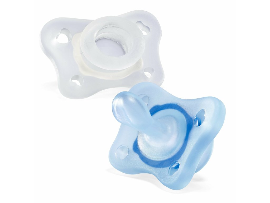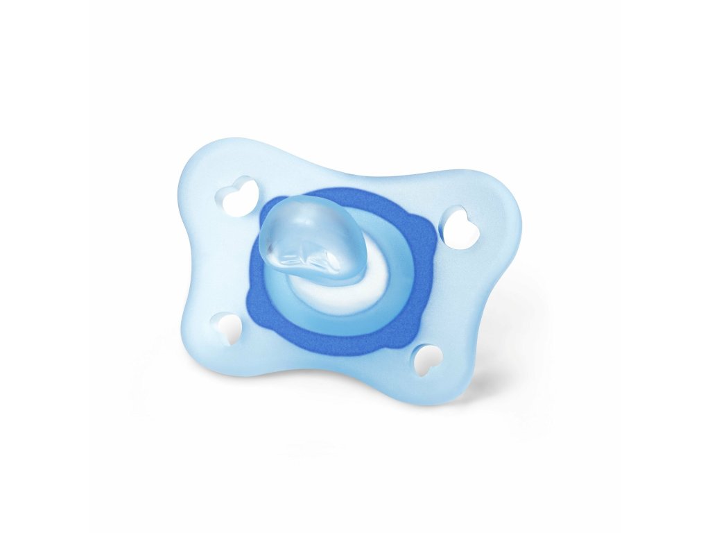 Chicco Physio Forma Mini Soft upokojujúce cumlíky, 2ks, modrá/transparentná, 0-2m