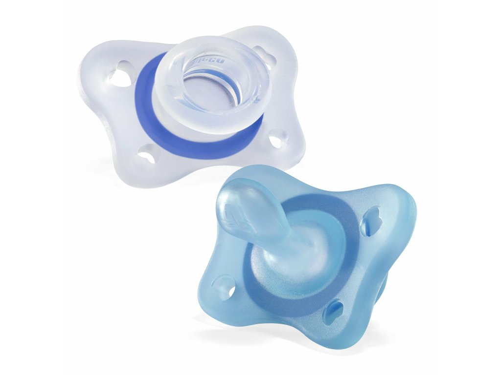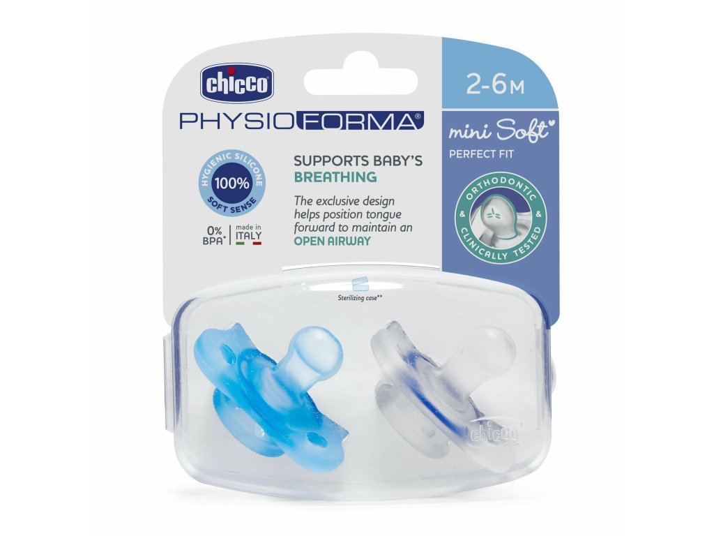 Chicco Physio Forma Mini Soft upokojujúce cumlíky, 2ks, modrá/transparentná, 2-6m