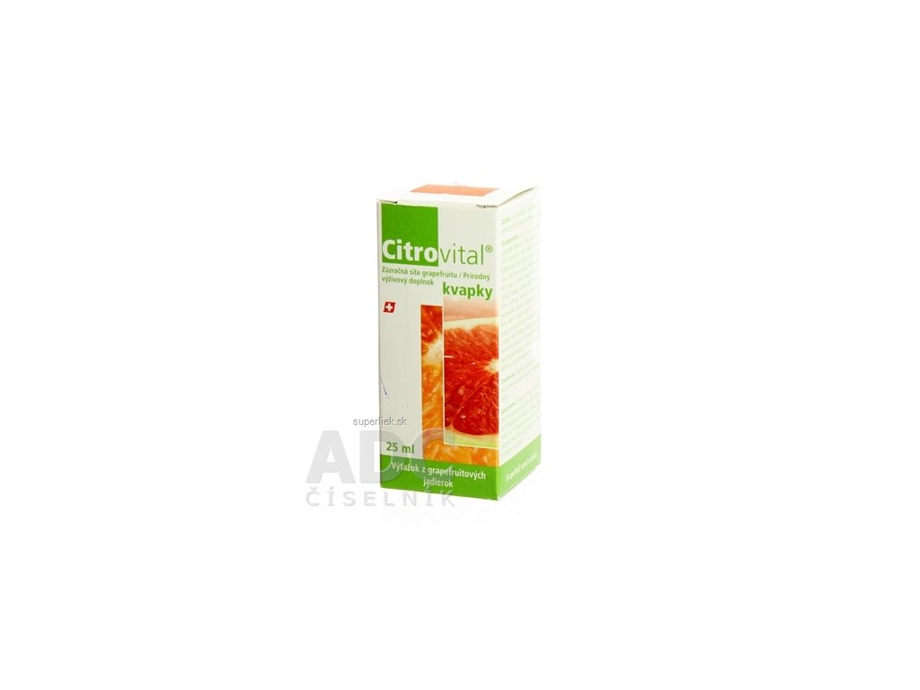 Výživový doplnok Citrovital kvapky je prírodný prostriedok získaný z jadierok grapefruitu (Citrus paradisi). Viac o produkte na adc.sk