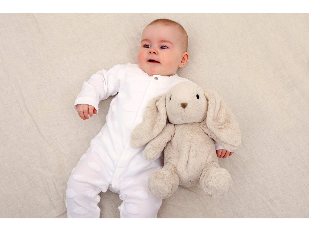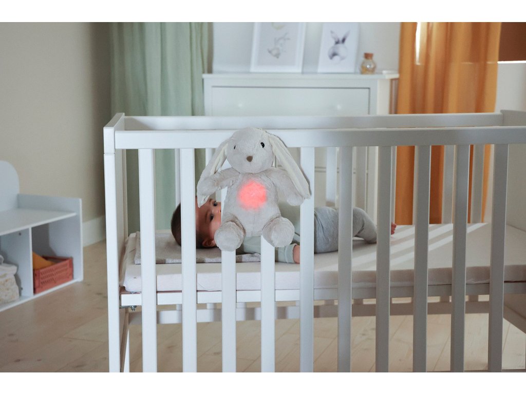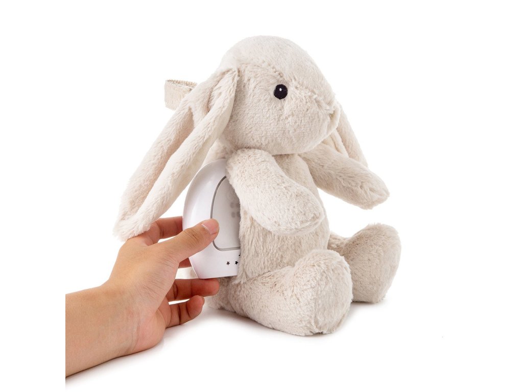 S 8 upokojujúcimi zvukmi a melódiami, z ktorých si môžete vybrať, bude vaše dieťa prenesené do ríše snov jediným stlačením tlačidla! Zajko má aj suchý zips, vďaka ktorému najnovšieho parťáka bábätka jednoducho pripevníte na každú postieľku. A keď sa zajko potrebuje okúpať, odstráňte reproduktor a hoďte maskota do bielizne.