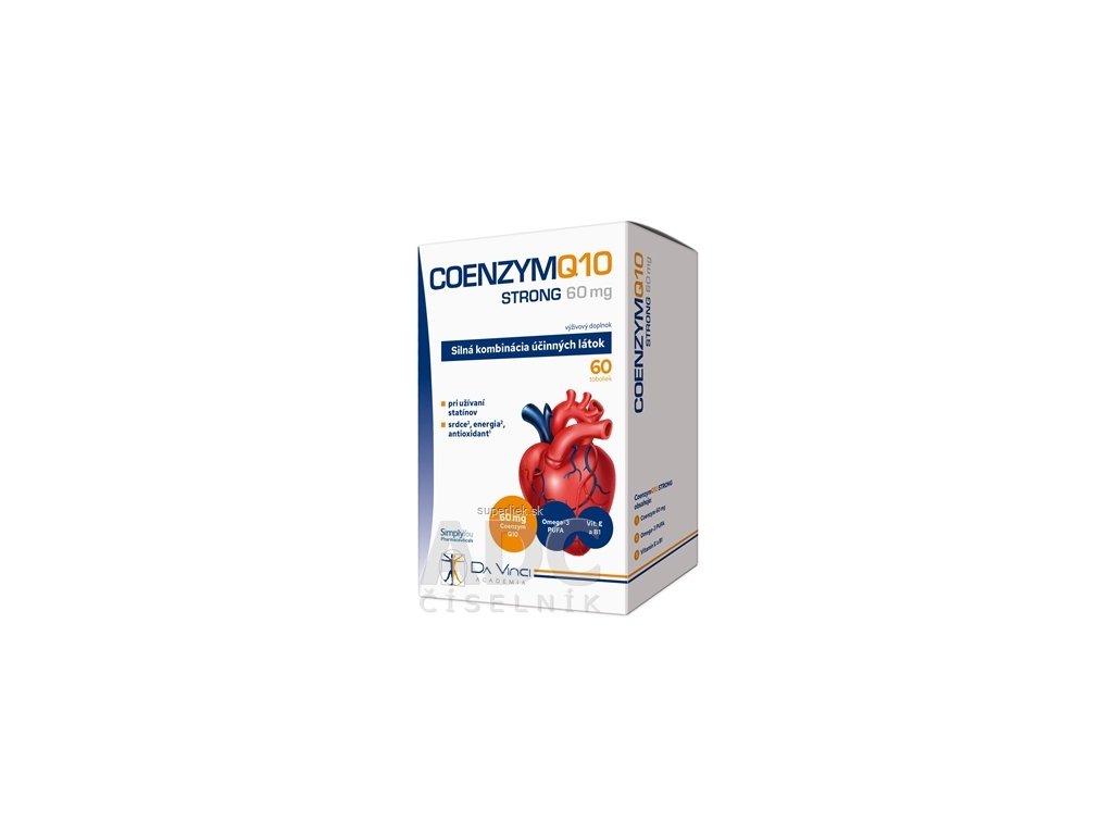 Coenzym Q10 – 60 mg – prírodná látka, nazývaná aj ubichinón Q10 alebo vitamín Q, je prirodzene obsiahnutá v bunkách ľudského tela, najmä v aktívnych a zaťažovaných bunkách (napríklad v bunkách srdcového svalu). Najviac Q10 obsahuje srdce, pľúca a pečeň, teda orgány s najvyššími nárokmi na energiu.