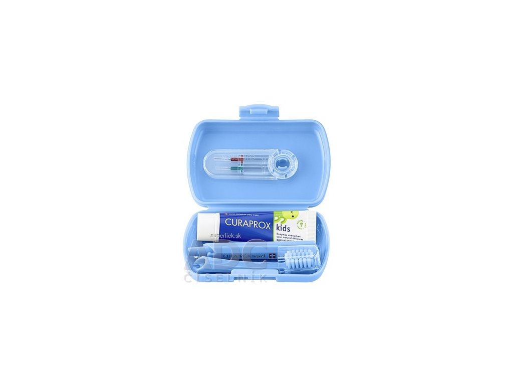 CURAPROX Kids travel set modrý (1x zubná kefka, 2x medzizubná kefka CPS, 1x zubná pasta mäta 6+ 10 ml, 1x nálepka) 1x1 set