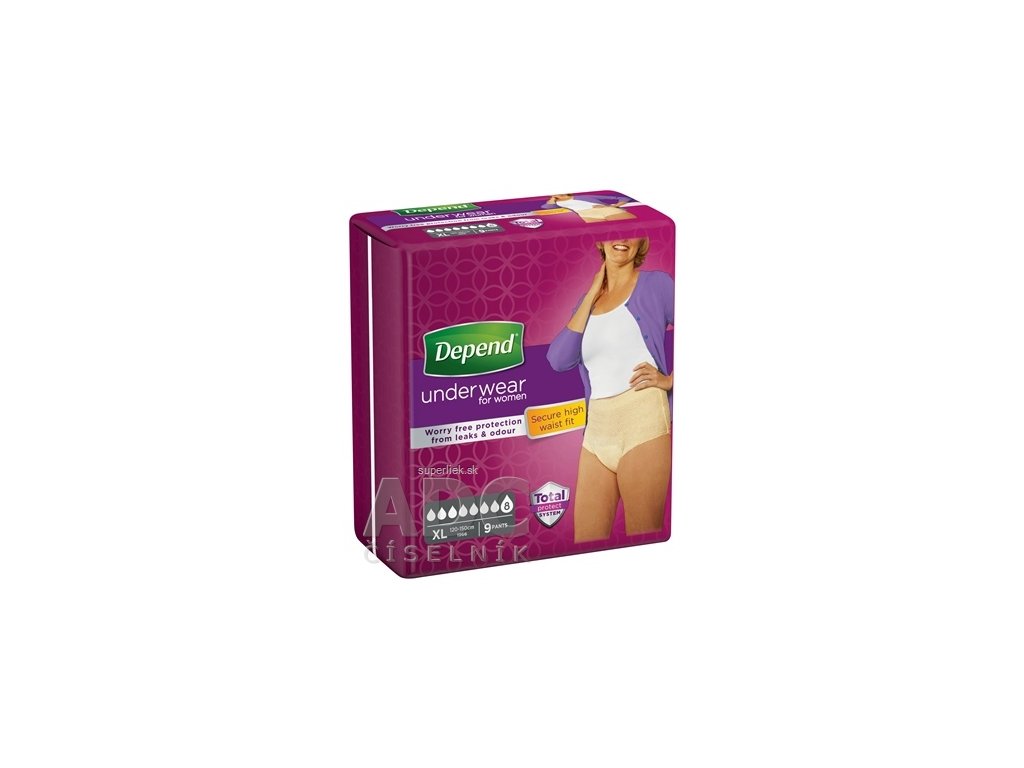DEPEND SUPER XL pre ženy naťahovacie nohavičky, obvod bokov 120-150 cm, (2017) 1x9 ks