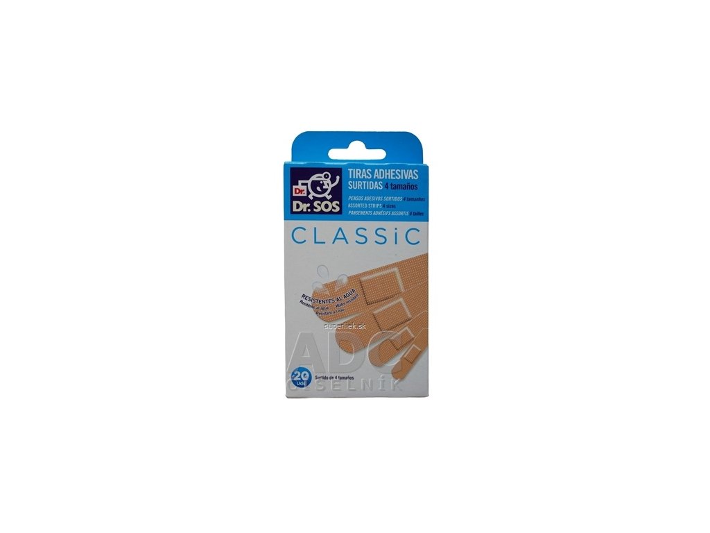 Dr. SOS Classic náplasť prúžky mix vodeodolné (12 ks 72x19mm, 8 ks 57x16mm) 1x20 ks