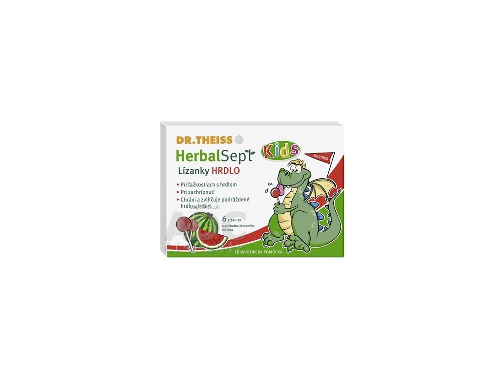 Dr.Theiss HerbalSept Kids HRDLO Lízanky s príchuťou červeného melóna 1x6 ks