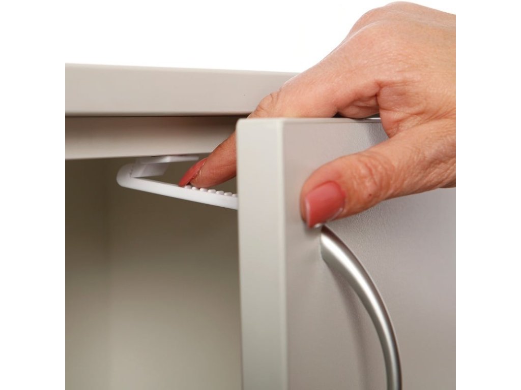 Zámky sa automaticky zatvárajú po zatvorení skrinky alebo zásuvky, čím zaisťujú neustálu ochranu.