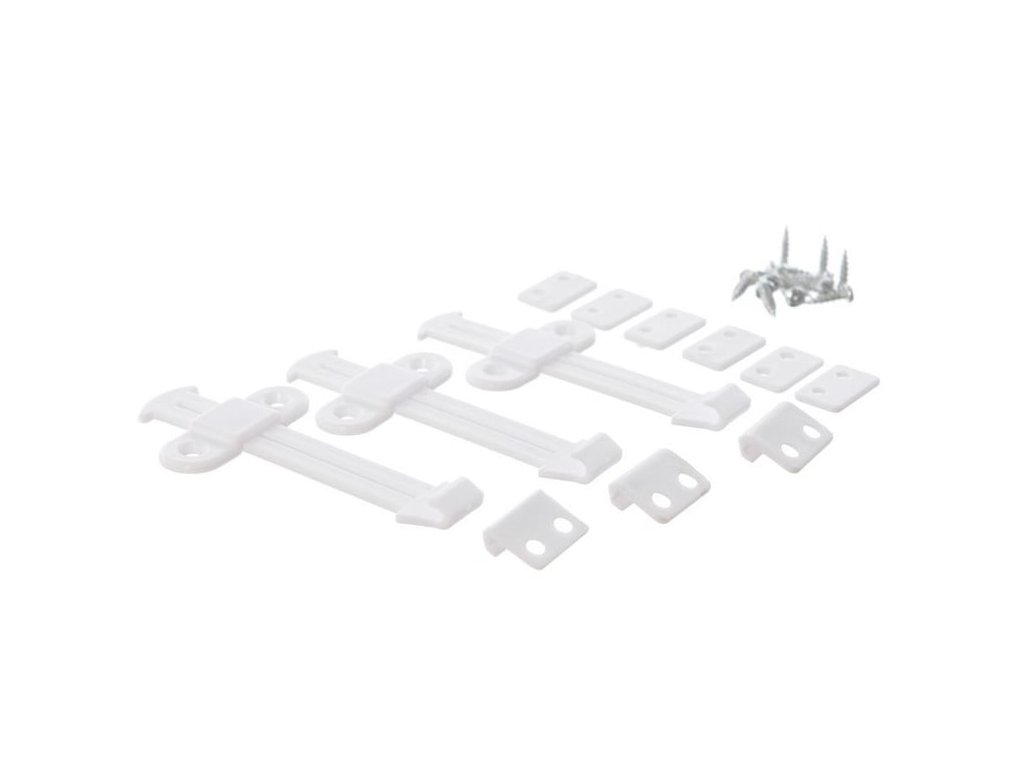 Pasuje do väčšiny koľajničkových zásuviek, vrátane horných aj spodných zásuviek s minimálnou vzdialenosťou 11 mm medzi vonkajším okrajom zásuvky a vnútrom skrinky.
