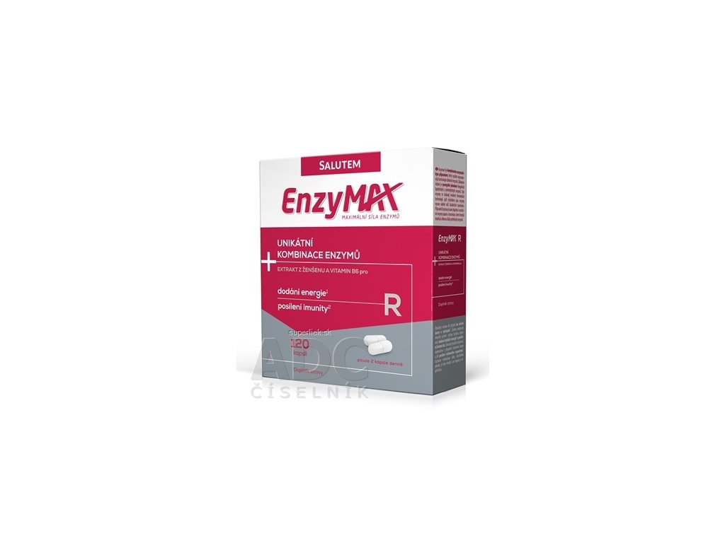Enzymax R je komplexným enzymatickým prípravkom, ktorý využíva najmodernejšie technológie získavania enzýmov. Základom zloženia je synergické pôsobenie fungálnych lipolytických a proteolytických enzýmov. Tieto enzýmy sa získavajú modernou fermentačnou technológiou, ktorej výsledkom sú enzýmy vysoko odolné voči žalúdočným kyselinám. Prípravok Enzymax je navyše doplnený i o rastlinné enzýmy papaín a bromelain, ktoré vhodne dopĺňajú celkovú škálu potrebných enzýmov. Obsiahnutý vitamín B6 prispieva k zníženiu únavy a vyčerpania. Ženšen podporuje imunitný systém2, zvyšuje fyzickú výkonnosť, dodáva chýbajúcu energiu1 a pozitívnu životnú silu. Stimuluje fyzické schopnosti, odporúčané v prípadoch intenzívnej únavy a pre posilnenie oslabeného organizmu2. Enzymax neobsahuje látky živočíšneho pôvodu, je teda vhodný i pre vegánov a vegetariánov.