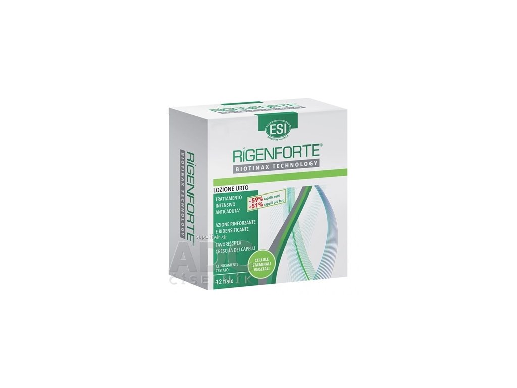 Esi Rigenforte ampulky na podporu rastu a proti vypadávaniu vlasov. Zloženie prírodných extraktov a patentovanej BIOTINAX technológie stimulujú rast vlasov, posilňujú vlasové korienky a zlepšujú zdravie pokožky hlavy. Pravidelným používaním sa vlasy stávajú silnejšie, hustejšie a zdravšie. Je vhodny pre mužov aj ženy, ktorých trápi vypadávanie vlasov. Klinické testovanie preukázalo zníženie straty vlasov o -59%, podráždenosť a deskvamácia pokožky poklesla o -85% a pevnosť vlasov vzrástla o 51% pri 12 týždňovom používaní jednej ampuly denne.