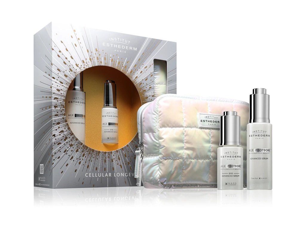 INSTITUT ESTHEDERM AGE PROTEOM darčekový set obsahuje ikonické duo sér dlhovekosti buniek. Ide o unikátne sérum s pokročilou biotechnológiou a efektom chaperónov – bodyguardov kožnej mladosti, ktoré trvalo uchováva a opätovne posilňuje kľúčové proteíny v pleti a chráni ju tak pred predčasným starnutím.