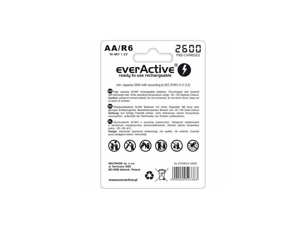 everActive PROFESSIONAL LINE R6 / AA, Nabíjateľné Ni-MH 2600 mAh batérie, 4ks