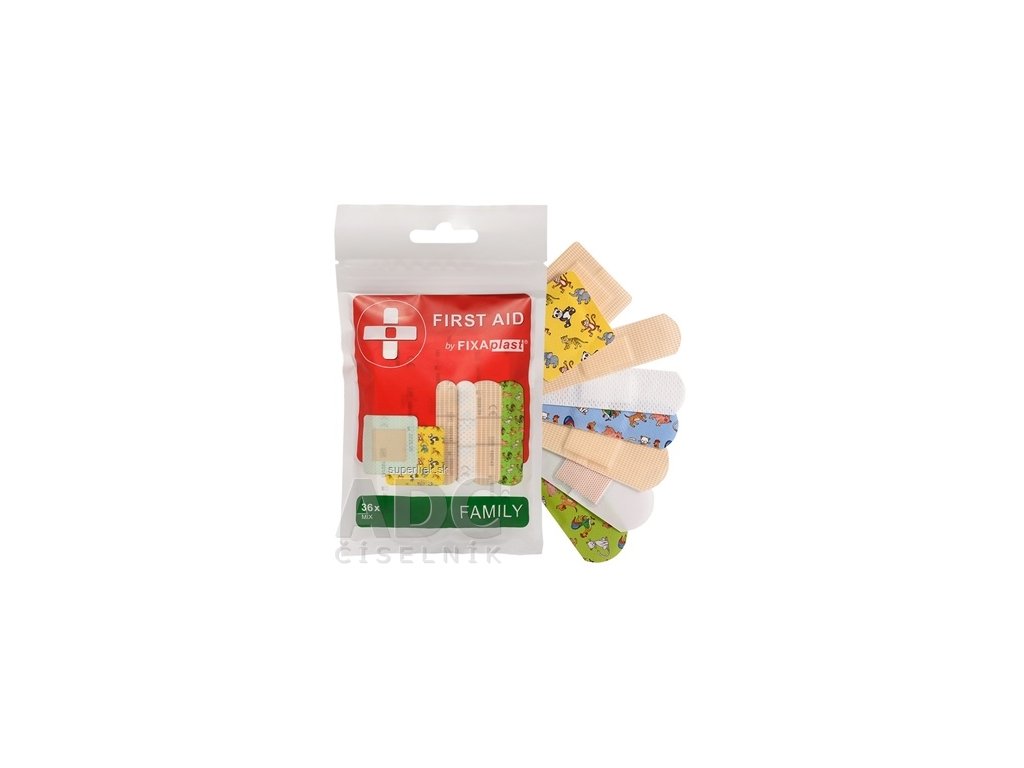 FIXAplast FIRST AID FAMILY náplasť MIX stripy, rôzne veľkosti, tvary a motívy 1x36 ks