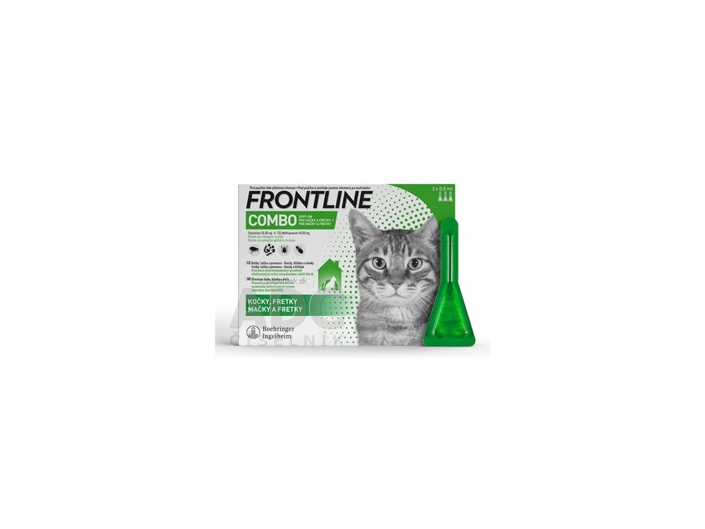 FRONTLINE COMBO SPOT-ON PRE MAČKY A FRETKY roztok na kožu proti kliešťom, blchám a švolám, v pipete, 3x0,5 ml