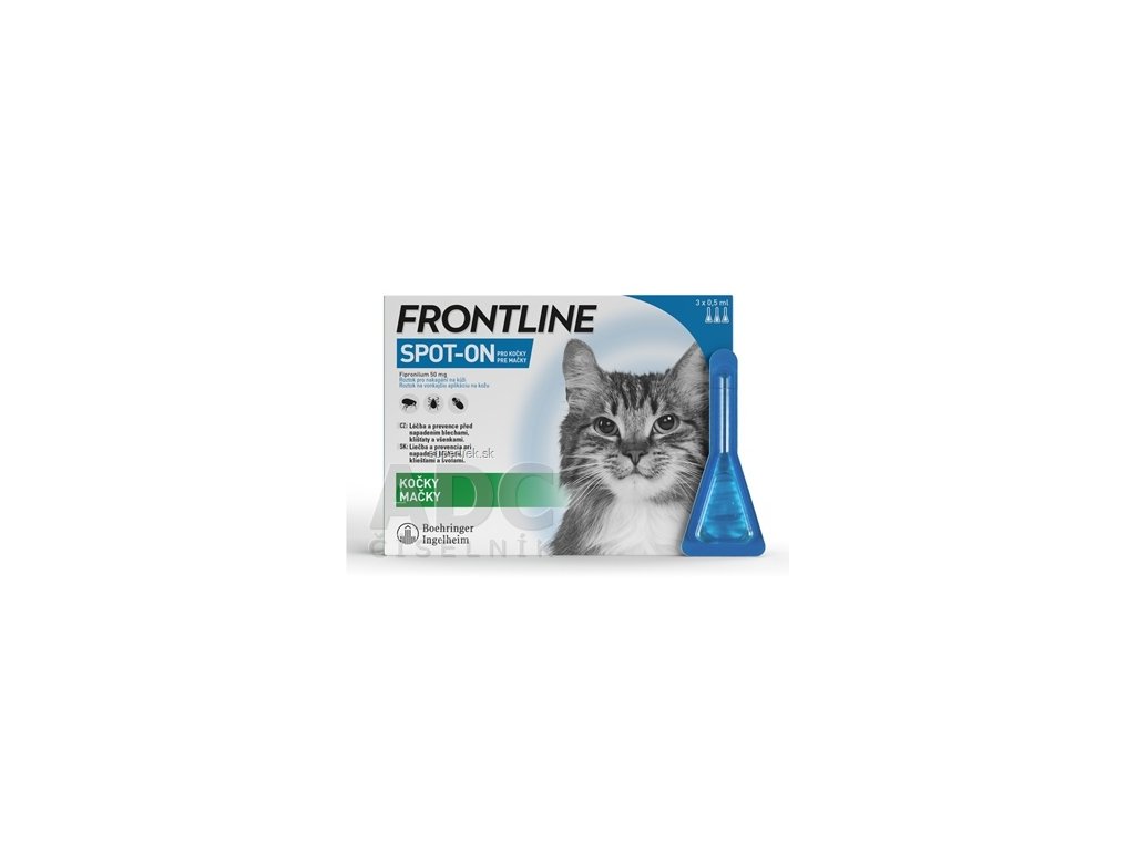 FRONTLINE SPOT-ON PRE MAČKY roztok na kožu proti kliešťom, blchám a švolám, v pipete, 3x0,5 ml