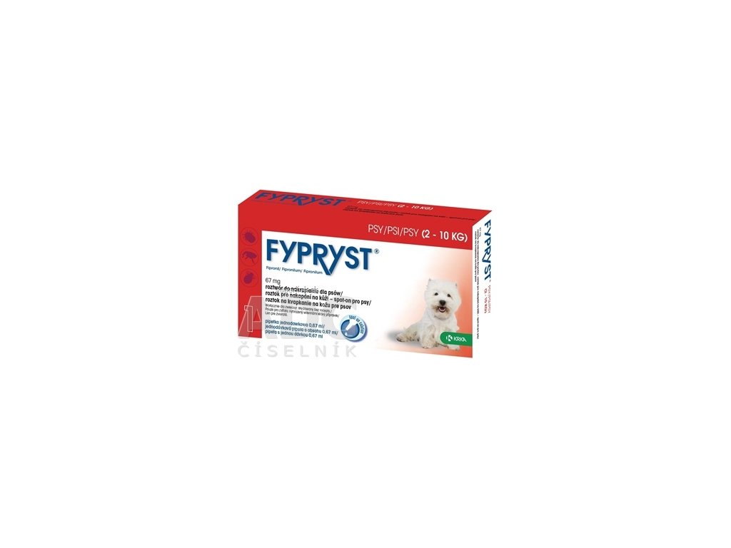 FYPRYST 67 mg PSY 2-10 KG roztok na kvapkanie na kožu pre psov (pipeta) 1x0,67 ml