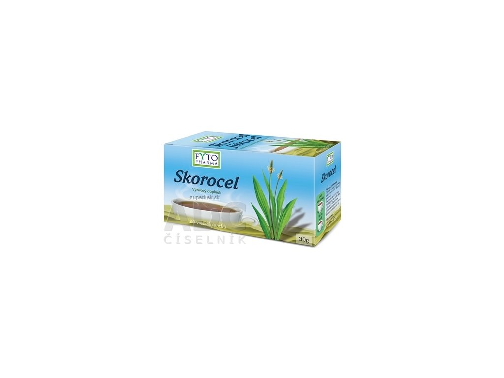 Výživový doplnok obsahuje porciovaný skorocelový list (Plantago lanceolata).