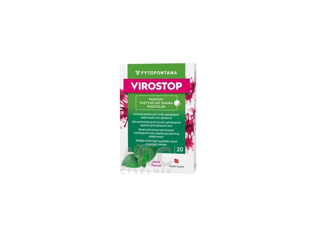 fytofontana VIROSTOP pastilky na cmúľanie, príchuť mäta (inov.2024, zdravotnícka pomôcka) 1x20 ks