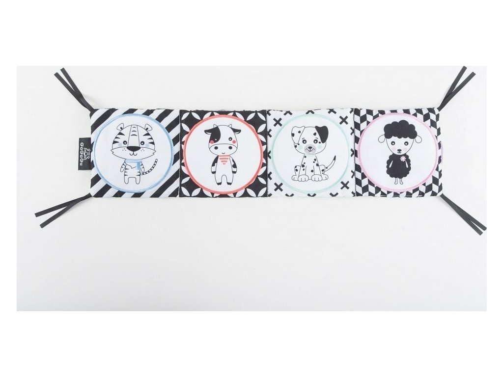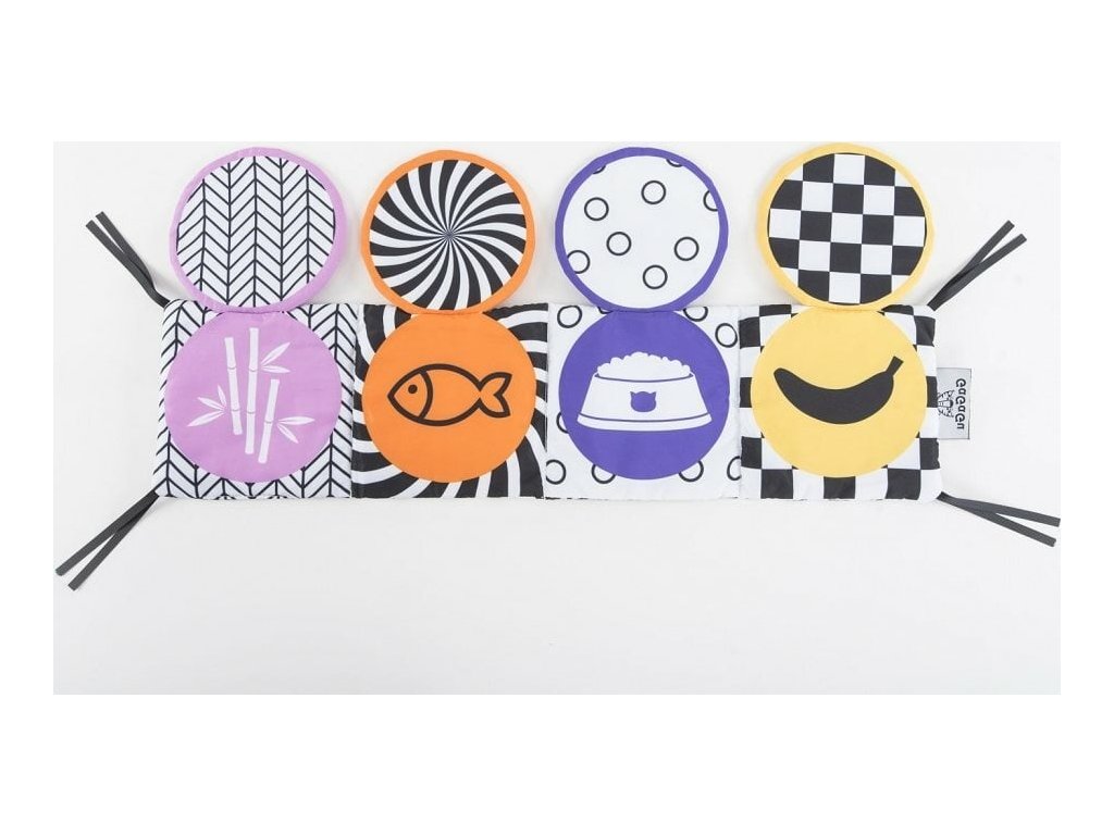 Knižka má kontrastné farby a vzory, ktoré stimulujú zrak dieťaťa a podporujú rozvoj jeho vizuálnych schopností.