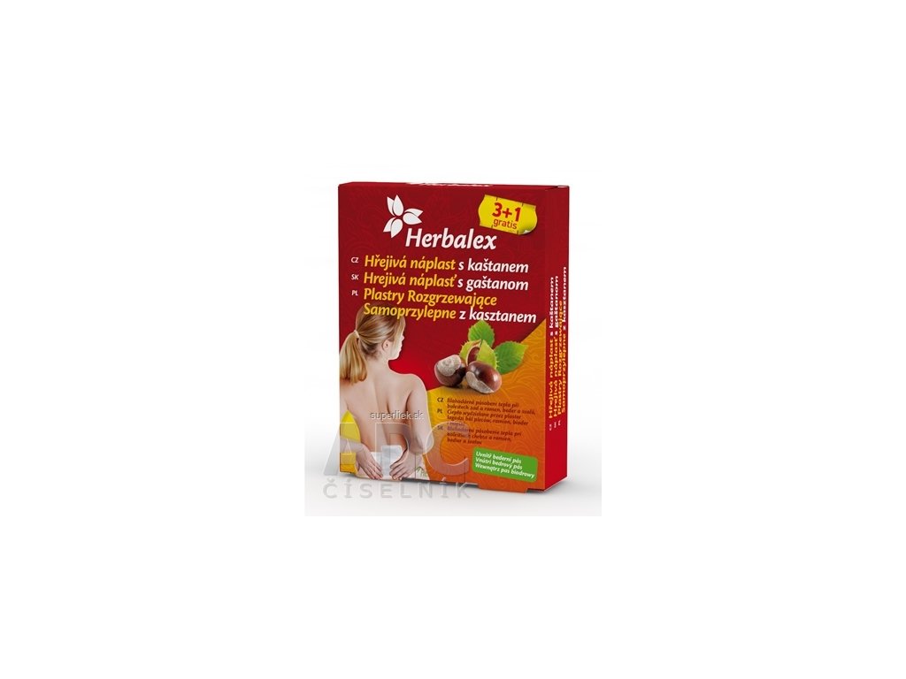 Herbalex hrejivá náplasť s gaštanom prináša pocit úľavy a prehriatie v oblasti namáhaného chrbta, ramien, bedier či svalov prirodzeným spôsobom - pôsobením suchého tepla. Suché teplo je dlhodobo známe pre svoje priaznivé účinky na pohybový aparát. Zároveň poskytuje hlbokú svalovú relaxáciu pri únave. Po vybratí náplati z ochranného (predajného) obalu začnú aktívne látky obsiahnuté vo vankúšiku reagovať s kyslíkom, vďaka čomu sa náplasť rozohreje. Hrejivý efekt sa na cieľovom mieste prejavuje po dobu až 15 hodín. Viac o produkte na adc.sk