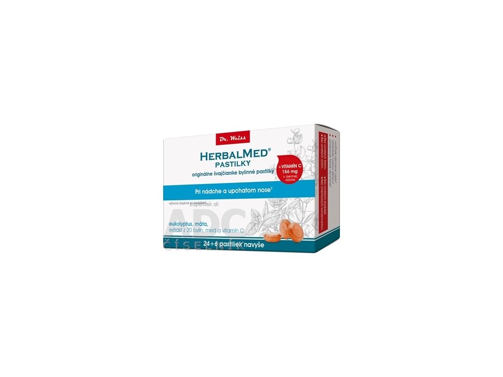 HERBALMED PASTILKY pri nádche - Dr.Weiss (eukalyptus, mäta, 20 bylín, vit.C) pastilky (24+6 navyše) 1x30 ks