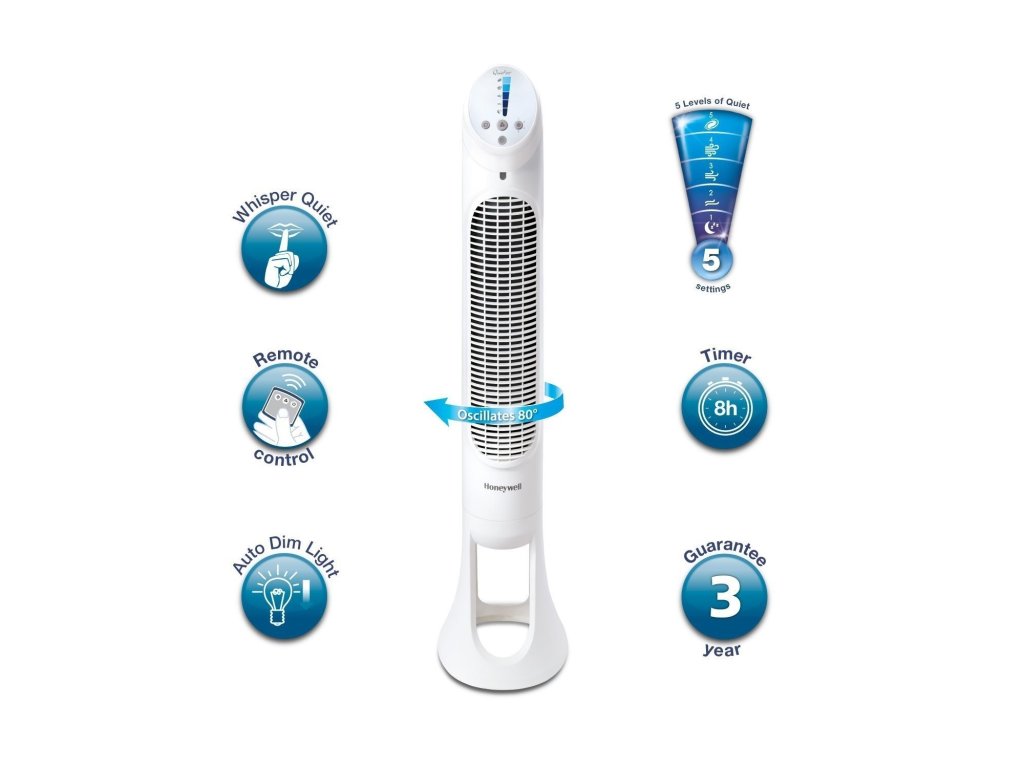 Užite si chladný a príjemný vzduch bez rušivého hluku s Honeywell HYF 260E stĺpovým ventilátorom.