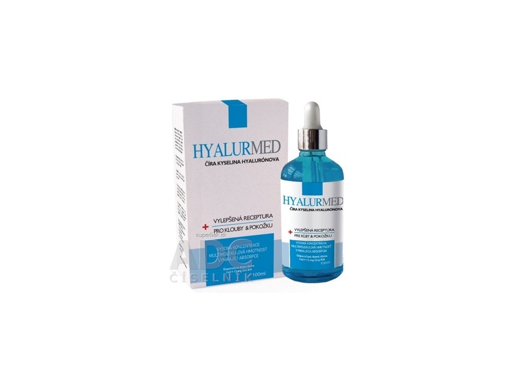 HYALURMED Číra kyselina hyalurónová 100ml je prípravok vo forme kvapiek na vnútorné užívanie. Každý 1 ml obsahuje 12 mg (najvyššia koncentrácia) kyseliny hyalurónovej najvyššej kvality.