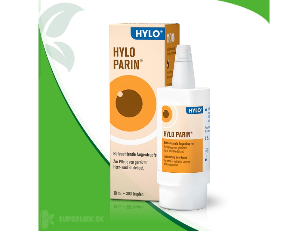 HYLO PARIN® obsahuje sodnú soľ kyseliny hyalurónovej, prirozenú látku, ktorá se nachádza nielen v oku, ale aj v ostatných častiach ľudského tela. Táto látka má jedinečné fyzikálne vlastnosti - vytvára rovnomerný, stabilný a dlhodobo priľnavý zvlhčujúci film, ktorý odoláva odplaveniu. Túto bioadhezívnu vlastnosť podporuje heparin. Heparin je tiež fyziologická substancia, ktorá sa svojou chemickou štruktúrou podobá sodnej soli kyseliny hyalurónovej. Sodná soľ kyseliny hyalurónovej a heparin ošetrujú rohovku a spojovku a spoločne s prirodzenými slzami zvlhčujú povrch oka. Oko je zabezpečené dlhodobo priľnavým a stabilným slzným filmom, a tak chránené pred dráždením okolitého prostredia. Vzhľadom na to, že HYLO PARIN® obsahuje fyziologické substancie a neobsahuje konzervačné látky je všeobecne veľmi dobre znášaný.