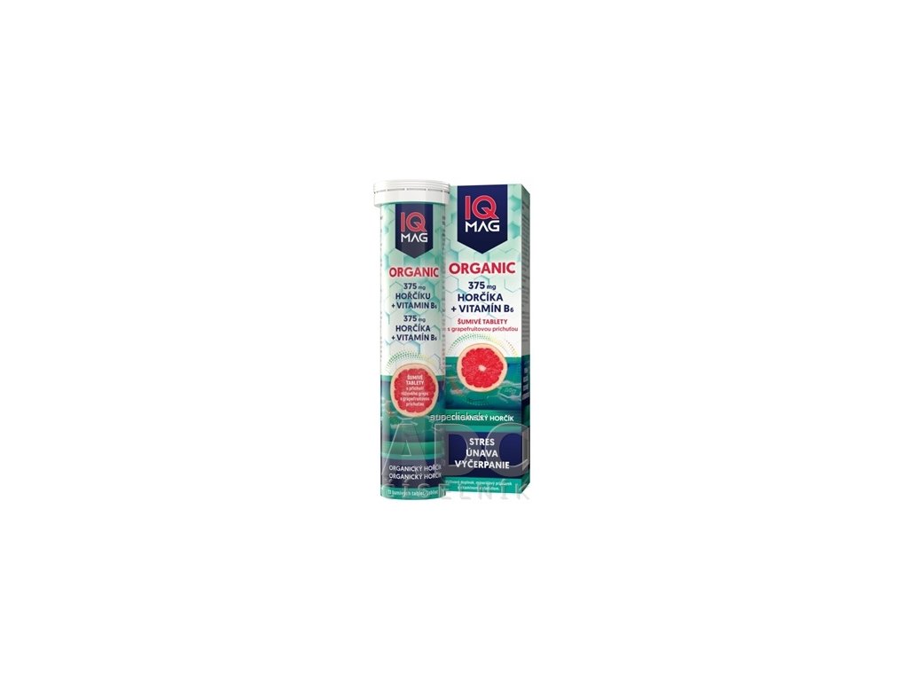 IQ MAG ORGANIC HORČÍK + Vitamín B6 šumivé tablety s grapefruitovou príchuťou 1x13 ks