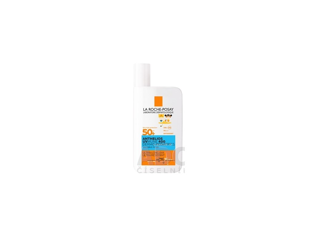 LA ROCHE-POSAY Anthelios UVMune400 Dermo-Pediatrics ultraľahký fluid SPF50+ 50ml ochrana proti ultradlhovlnnému UVA žiareniu* Vysoko odolný. Neštípe v očiach. Veľmi vysoká ochrana proti UVA/UVB + ultradlhovlnnému UVA žiareniu. Vysoká odolnosť voči vode, potu a piesku. Testované pod dermatologickou a pediatrickou kontrolou.