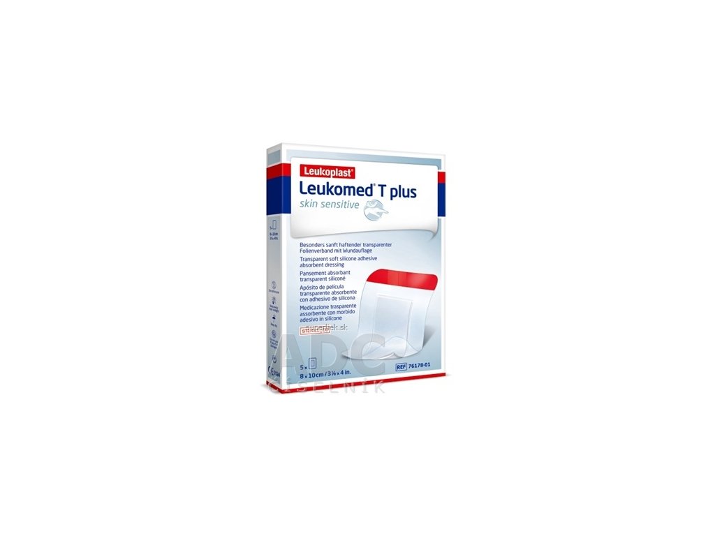 LEUKOPLAST LEUKOMED T PLUS SKIN SENSITIVE filmové krytie s vankúšikom, sterilné, 8x10 cm, 1x5 ks