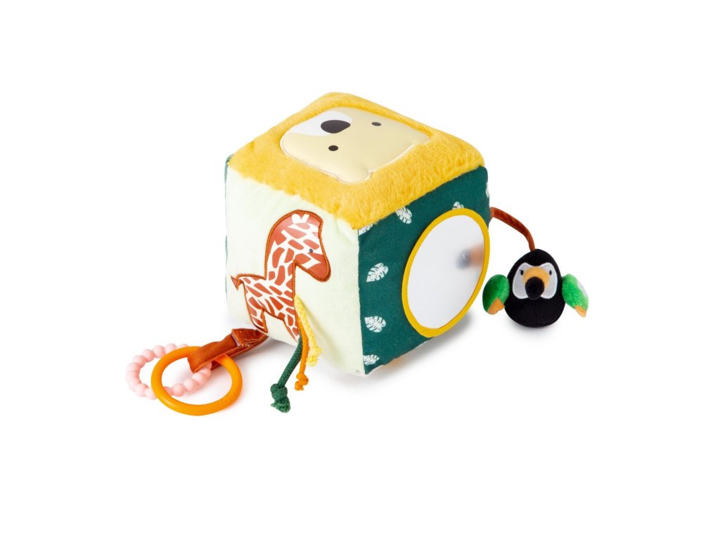 Téma džungle dodáva kocke zaujímavý a atraktívny dizajn, ktorý môže bábätko zaujať a inšpirovať ho k ďalším prieskumom.
