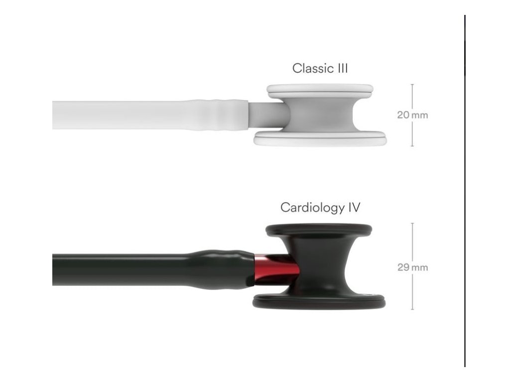 Kardiálne stetoskopy 3M™ Littmann® poskytujú najlepšiu možnú akustickú citlivosť. Vďaka pokročilej technológii pomáhajú pri získavaní čo najpresnejšej auskultácie. Littmann Cardiology IV je všestranný prístroj s kvalitou zvuku 9 (z 10). Navrhnuté na diagnostiku stavov, ako je aortálna stenóza, šelesty tretieho tónu (S3) a sotva počuteľné pľúcne abnormality.