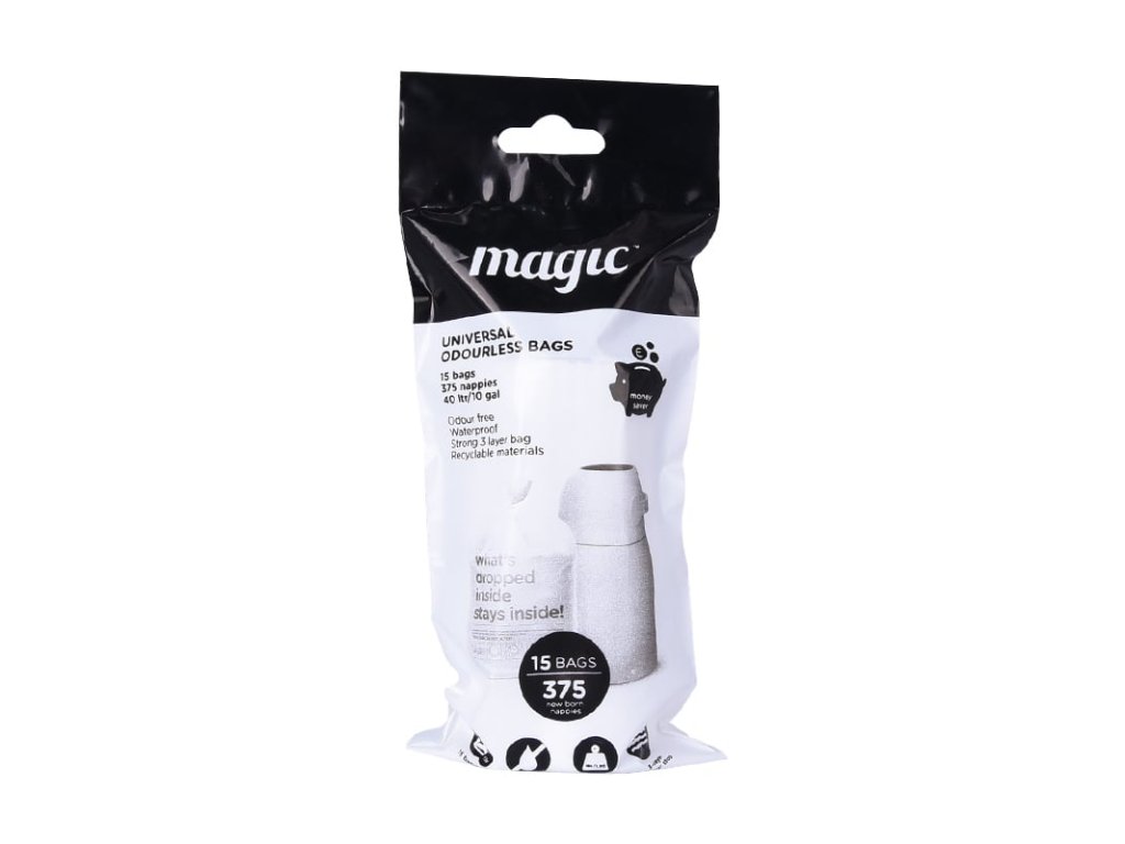 Do vedra na plienky nie sú potrebné žiadne špeciálne vrecká, náplne ani vložky, čo šetrí čas a peniaze na rozdiel od iných vedierok na trhu.