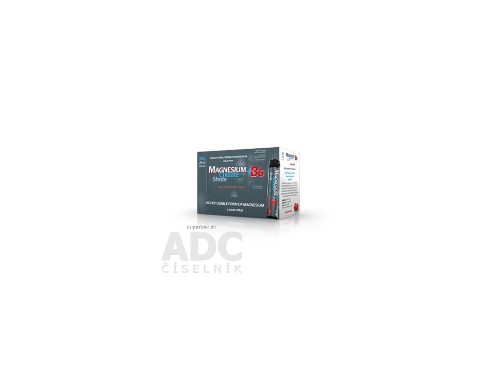 Výživový doplnok so sladidlami a višňovou príchuťou. Chelátová forma horčíka. 1 ampula (25ml) obsahuje: Magnesium: 375 mg, Vitamín B6: 1,4 mg